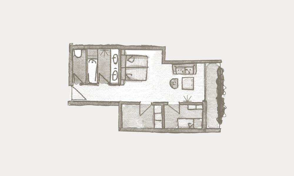 Die Abbildungen und Grundrisse zeigen den Charakter des jeweiligen Zimmertyps. Maße und Möblierung können im Detail abweichen, teilweise verfügen diese Suiten über ein Extrazimmer mit Einzelbett. Falls Sie dies wünschen geben Sie bitte gesondert Bescheid, damit wir Ihre Wünsche entsprechend vermerken.