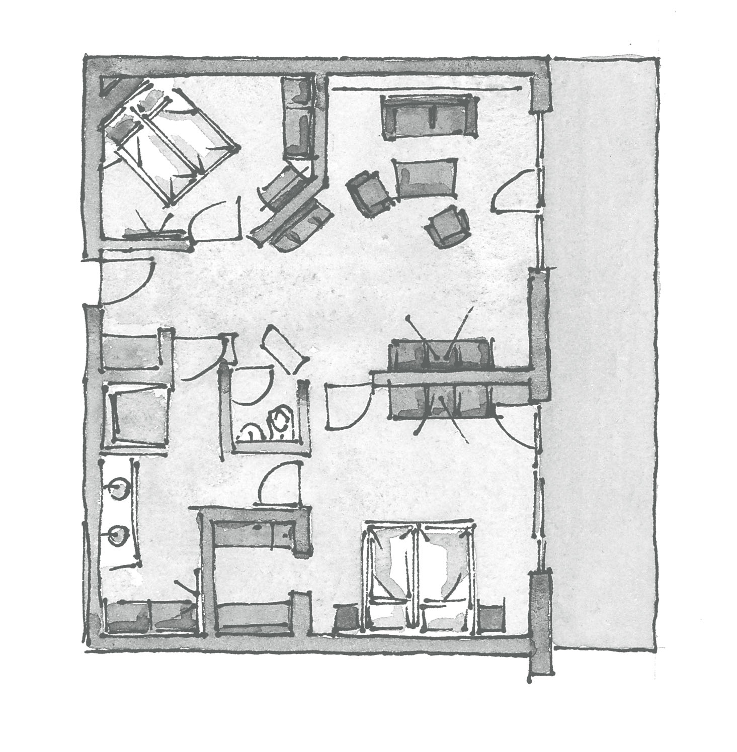 Die Abbildungen und Grundrisse zeigen den Charakter des jeweiligen Zimmertyps. Maße und Möblierung können im Detail abweichen.