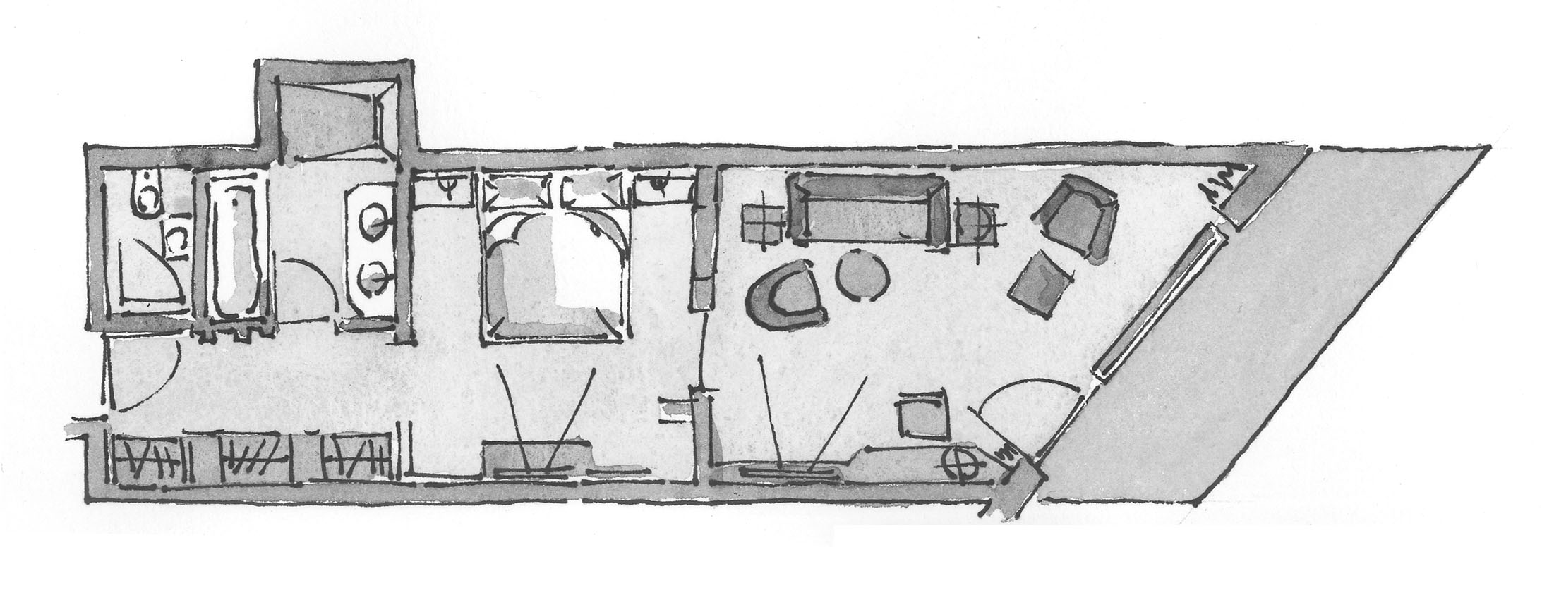 Die Abbildungen und Grundrisse zeigen den Charakter des jeweiligen Zimmertyps. Maße und Möblierung können im Detail abweichen.