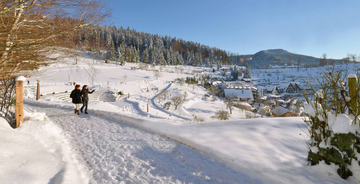 Allein die Spaziergänge auf gebahnten Wegen durch unseren 70 ha großen Park mit weiten Blicken über den eingeschneiten Schwarzwald sind ein Erlebnis. Darüber hinaus laden Sie 15 präparierte Wege rund um Bad Peterstal-Griesbach zu Winterwanderungen ein. Auf zwei Schneeschuhtrails stapfen Sie ins Winterabenteuer hinein.